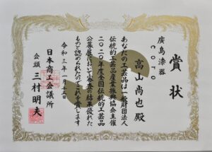 2020年度全国伝統的工芸品公募展で、日本商工会議所会頭賞を拝受しました。 ![]()