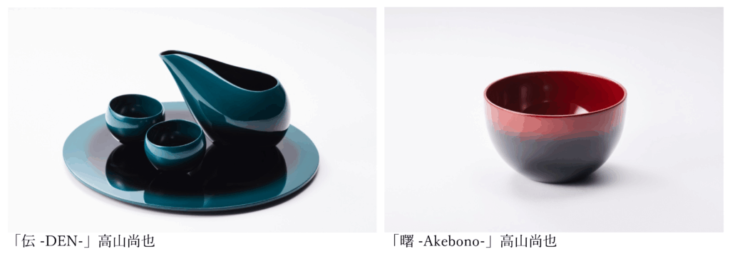 出展作家は、伝統的な仏壇塗の技法をもとに現代の器やオブジェを制作する塗師・高山尚也と、精緻な組子細工を用いて家具や日用品を手がける組子師・上高成道。