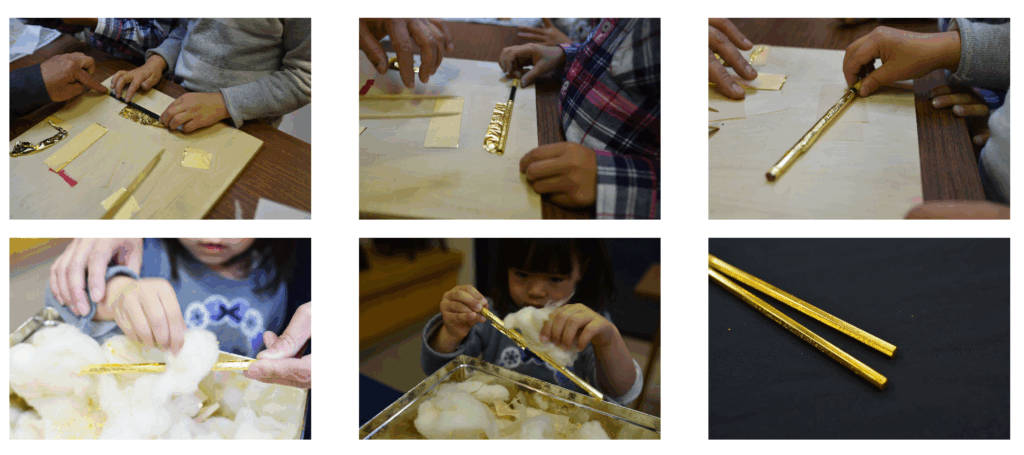 そんな金箔が、ピタッと鉛筆に張り付く様子は、まさに不思議でいっぱいです!