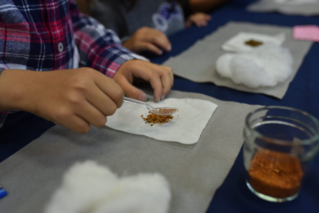 5種類の漢方香料(老山白檀、桂皮、丁子、大茴香、龍脳)を使いオンリーワンの匂い袋づくり!。